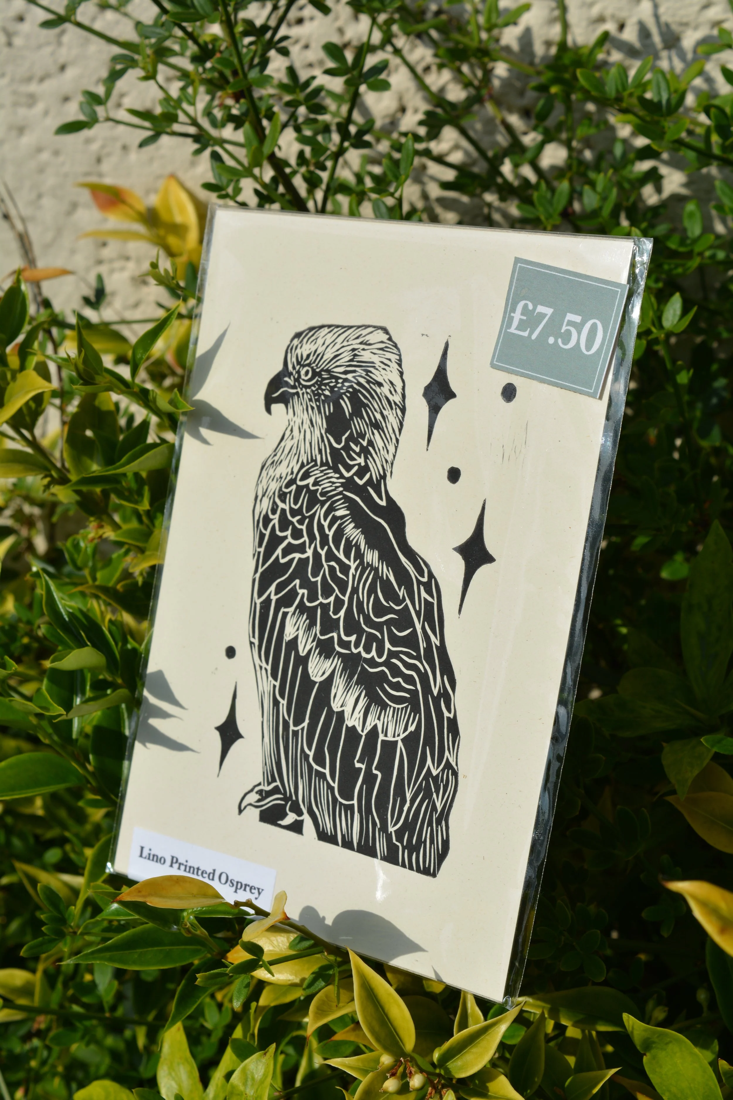 Inspired by the Ospreys that live and breed at Carey’s Secret Garden in Wareham. Printed onto a cream coloured premium 110gsm Paper with visible flecks and fibres, made from 80% recycled post-consumer waste. Each Print comes with descriptive label, 2mm Thick greyboard and a compostable sleeve to keep the print safe during transport.