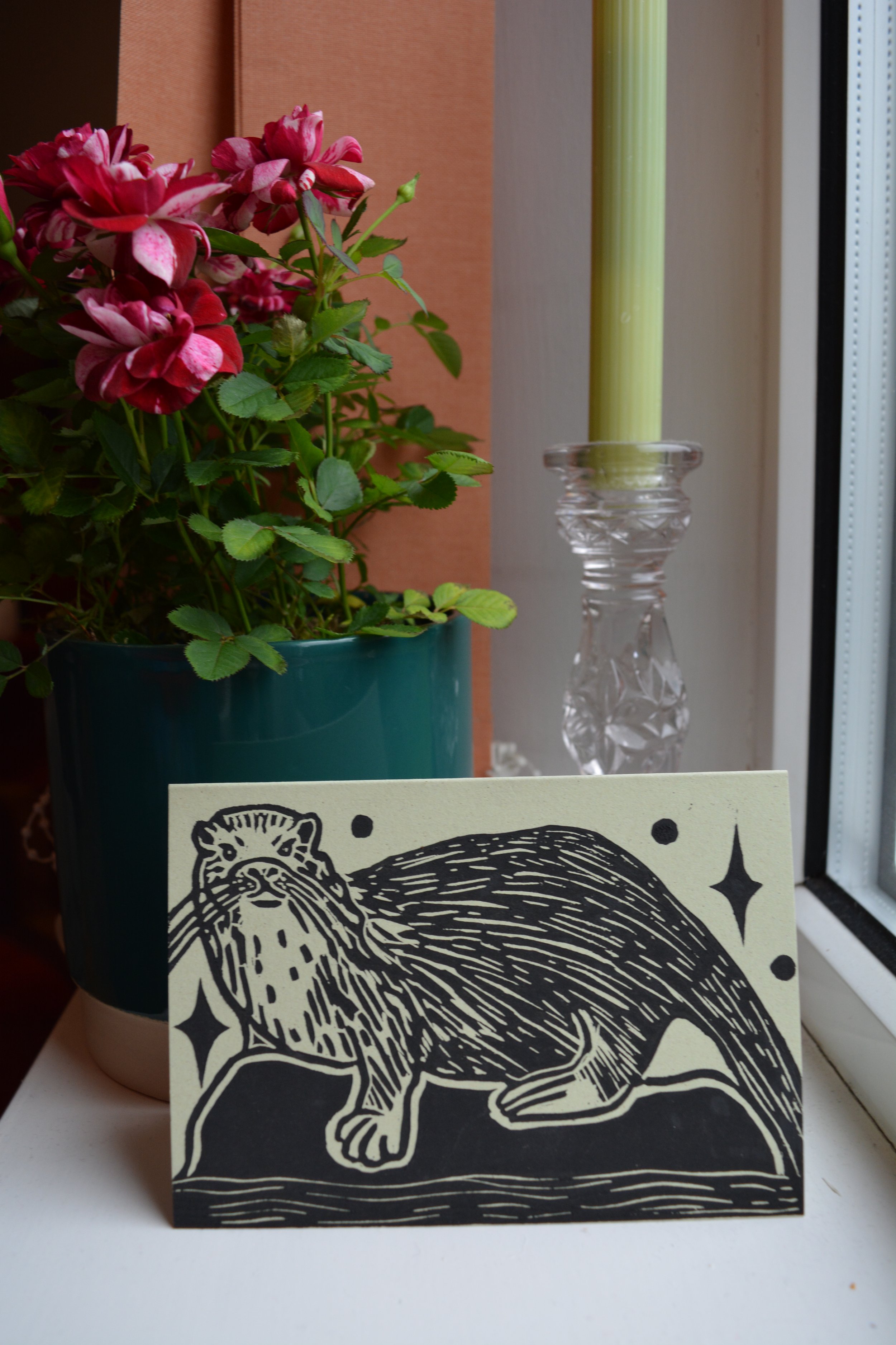 Otter Lino Printed Card